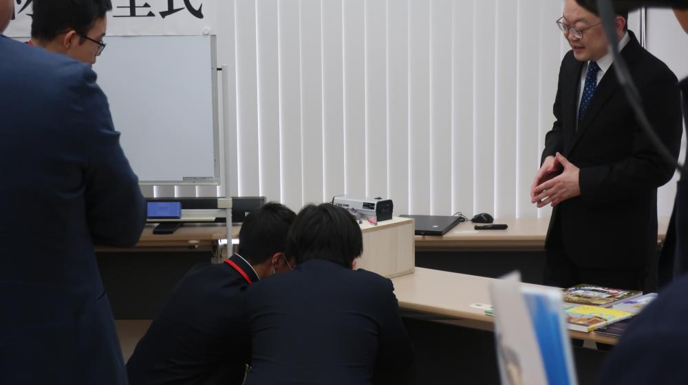 当日は、富沢中学校の生徒さん3名がたまきさんサロンの職場体験にきておりましたので、贈呈式に参加していただき、鉱物の蛍光実演なども見ていただきました。