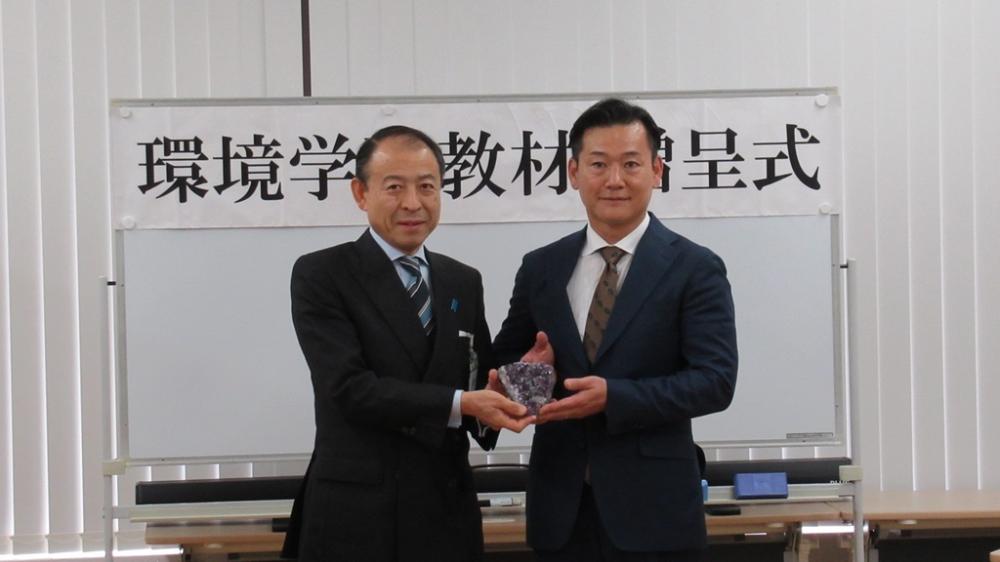 また、今回の環境学習教材を選定するにあたり、東北大学大学院環境科学研究科の大庭先生にもご尽力いただきました。贈呈式の中では鉱物についての説明と、たまきさんサロンに遊びに来るこどもたちへ地学や温暖化対策など少しでも興味を持って欲しいという想いをお話しくださいました。