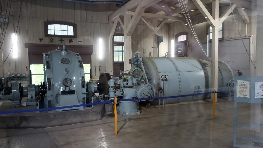 今回見学した「三居沢電気百年館」は、運転開始百年目を記念して昭和63年に建てられた2階建ての施設です。隣接している発電所の木造平屋建ての建屋は、明治41年(1908年)に建てられたもので平成11年(1999年)には国登録有形文化財にも登録されています。