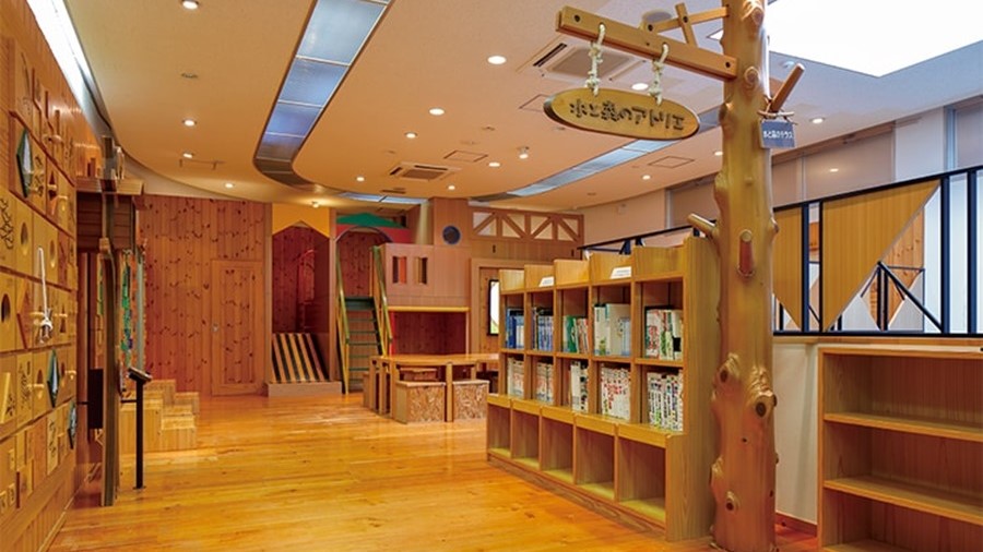 ここは内装素材に木製品を多く用いて、三居沢発電所に関係の深い広瀬川や青葉山の自然について、仕掛けジオラマや図書、動画などで自由に楽しく学ぶことができる素敵な空間になっています。