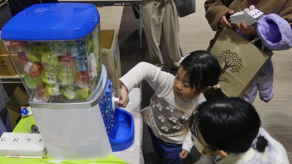 指示されたブースのミッションをクリアしたら、ガチャガチャを回してもらい、学生を中心とした環境フォーラムせんだい実行委員会で作った環境にやさしいグッズなどをプレゼントしました。