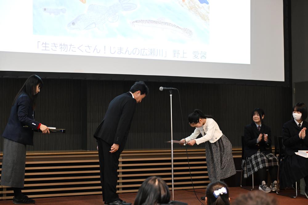 みなさんには賞状のほか、副賞として図書カードと