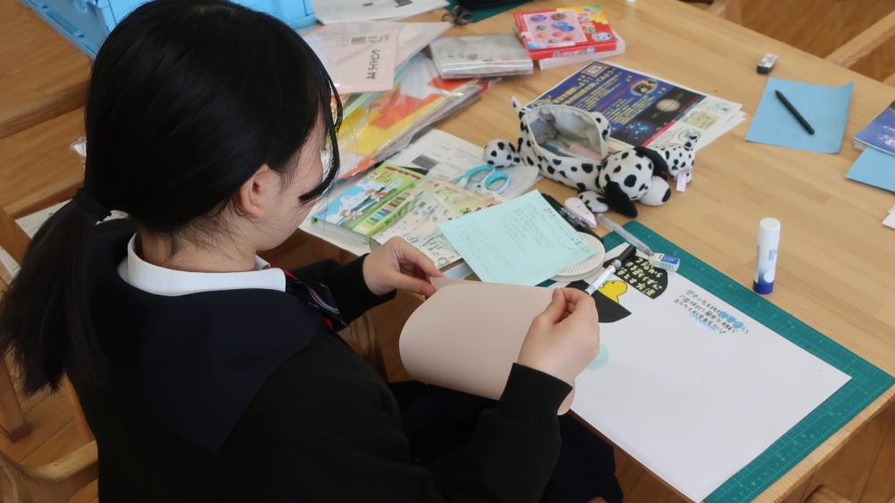 2日間を通して、たまきさんサロンにある3,500冊の本の中から生徒ひとりひとりがそれぞれ1冊ずつおすすめの本を選び、POP作りに取り組みました。