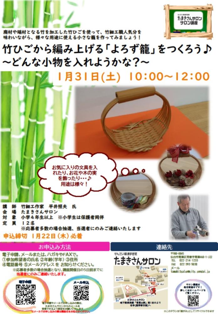 『竹ひごから編み上げる「よろず籠」をつくろう♪〜どんな小物を入れようかな?』〜のご案内