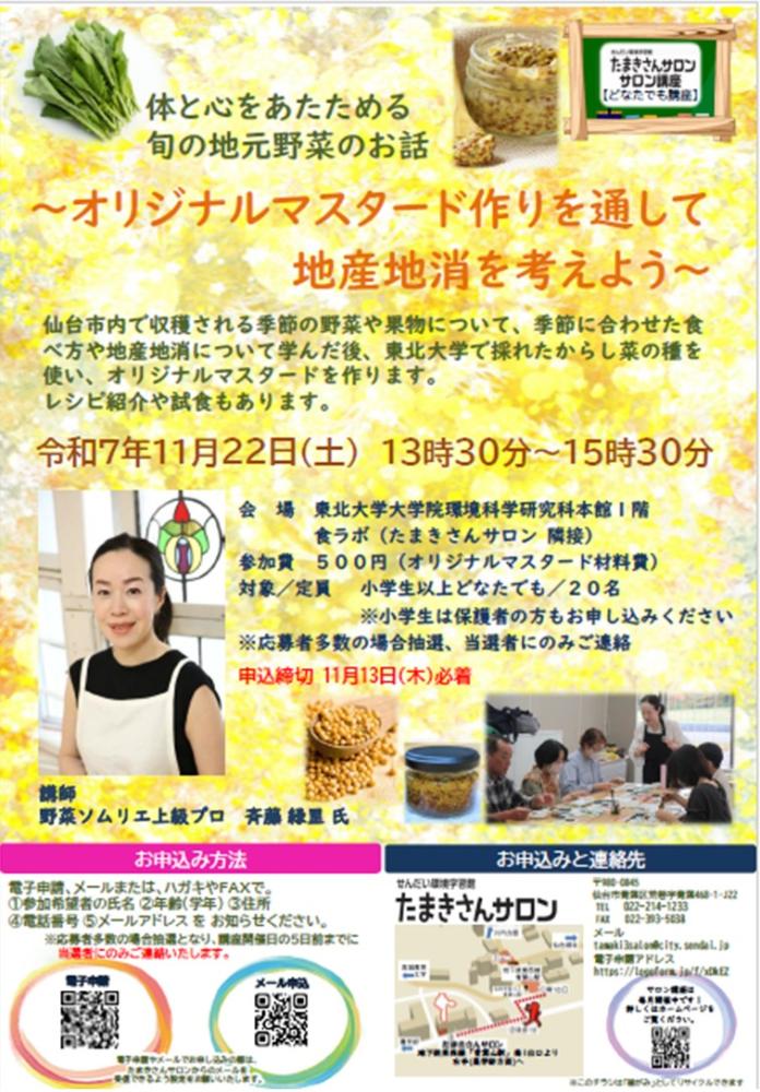 「体と心をあたためる旬の地元野菜のお話〜オリジナルマスタード作りを通して地産地消を考えよう〜」のご案内