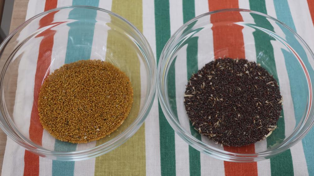 マスタードシードは、講師があらかじめゴミを選り分け水洗いし、酢に一晩漬けておいてくださいました。