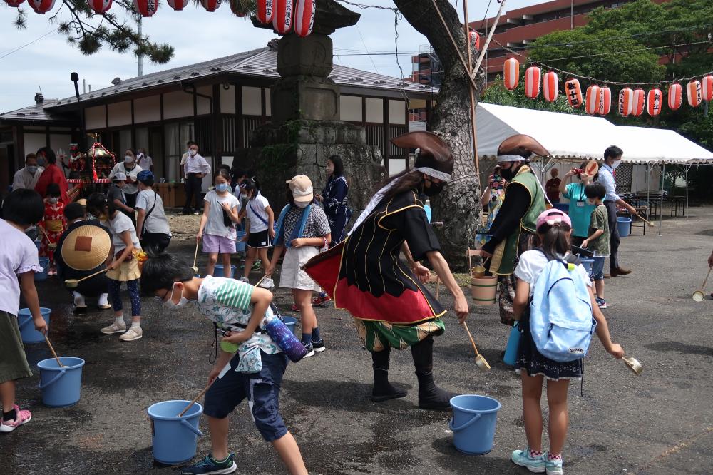 8月1日(月)、荒町商店街の毘沙門天王祭の開催にあわせ、荒町毘沙門天王で打ち水イベントを実施しました!
