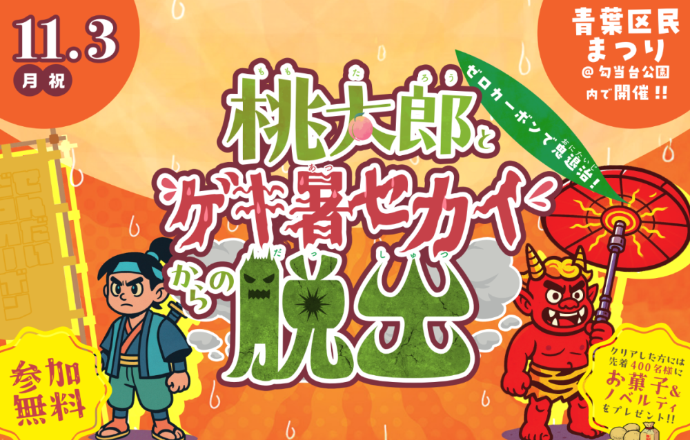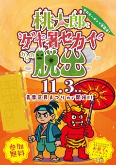 (1)青葉区民まつり内でのなぞときイベント「桃太郎とゲキ暑セカイからの脱出」
