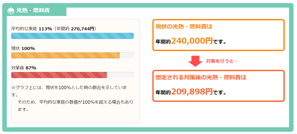また、実際に診断を受ける前にWEBで簡単な診断を受けることも可能です。うちエコ診断WEBサービスでは、ご家庭の気になる部分に関していくつか質問事項に回答することで、対策の提案や年間でどのくらい経済効果があるかを確認することができます。