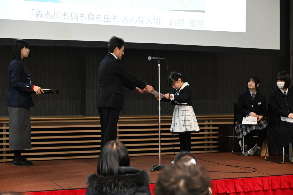 みなさんには賞状のほか、副賞として図書カードと
