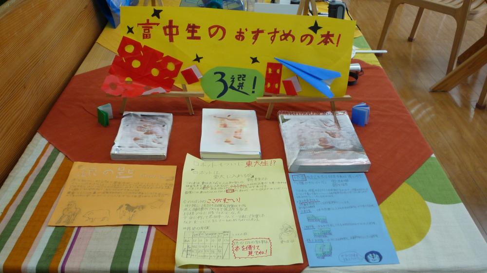 3日間を通して、たまきさんサロンにある3,600冊の本の中から生徒ひとりひとりがそれぞれ1冊ずつおすすめの本を選び、POP作りに取り組みました。