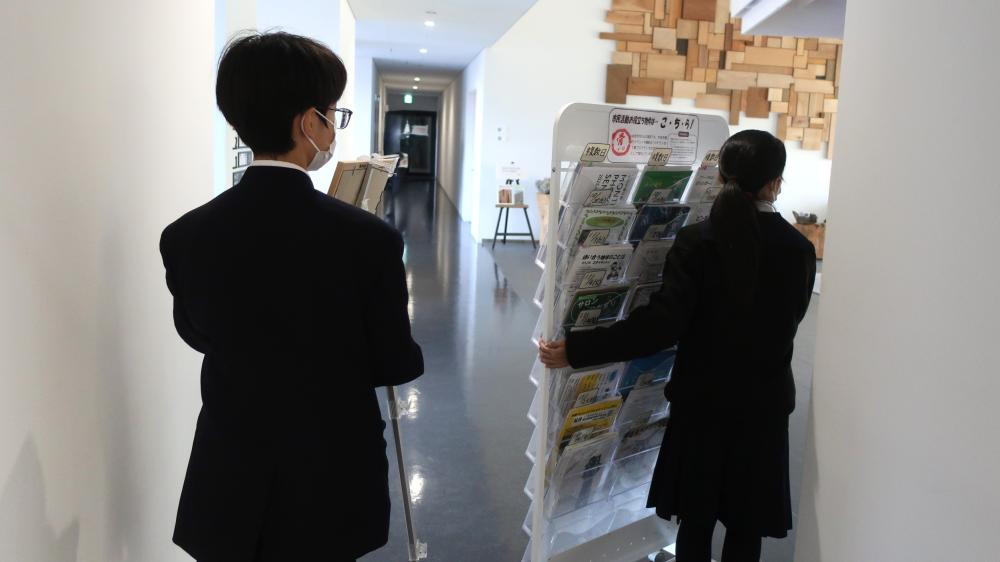 まずは、看板を出すなどの開館の準備、図書の貸し出し業務などをたまきさんサロンスタッフと一緒に行いました。