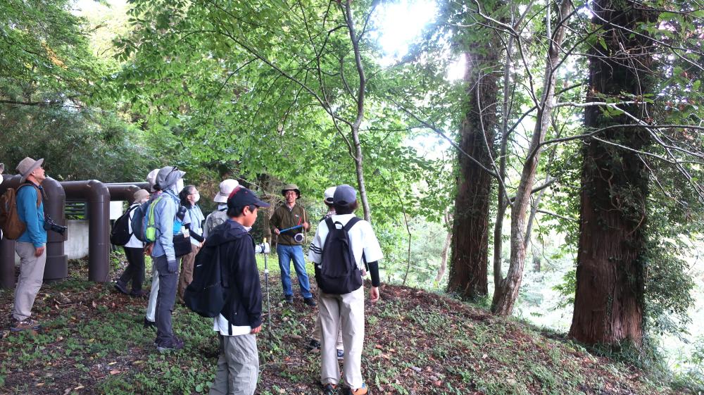 ところどころ、樹木や季節の植物を大山先生に紹介していただきながら、愛子方面に通ずる古い街道跡の最上道中にある最上台まで散策しました。