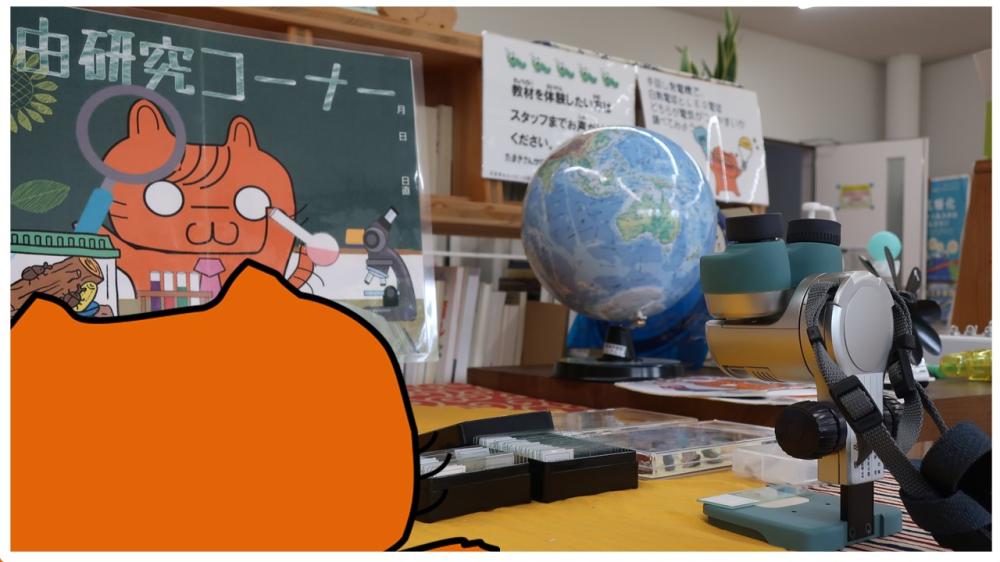 「自由研究コーナー」に「顕微鏡(20倍)」と「プレパラートセット」が加わりました。