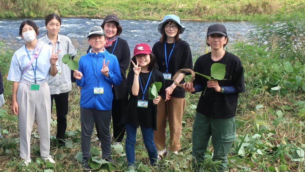 草刈りの後は、水辺の環境保全の役割や意義、機械を使わない人の手での除草の利点や、刈った草の環境負荷軽減を目指した利活用の取り組みなどを学びました。