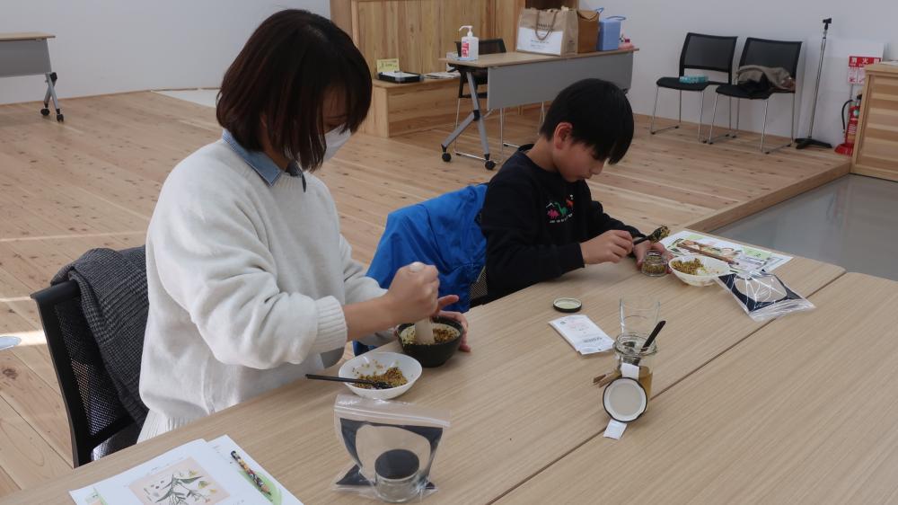 ドレッシングは旬の地元野菜の春菊に合わせて試食していただきましたが、お子様から春菊が苦手な大人の方まで、皆様「おいしい!」と大絶賛でした。